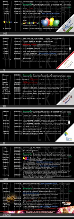 Bitte beachten Sie an Feiertagen, wie Weihnachten und Ostern, unsere speziellen Angebote in unserem Saisonkalender.